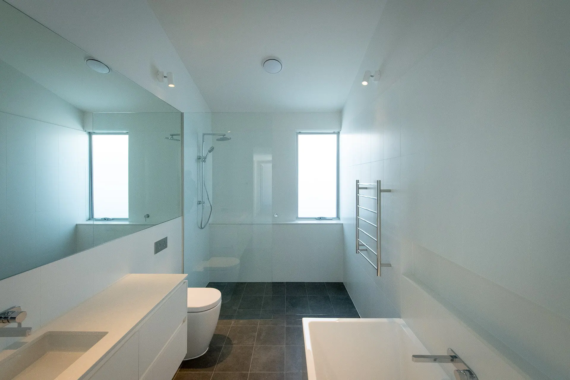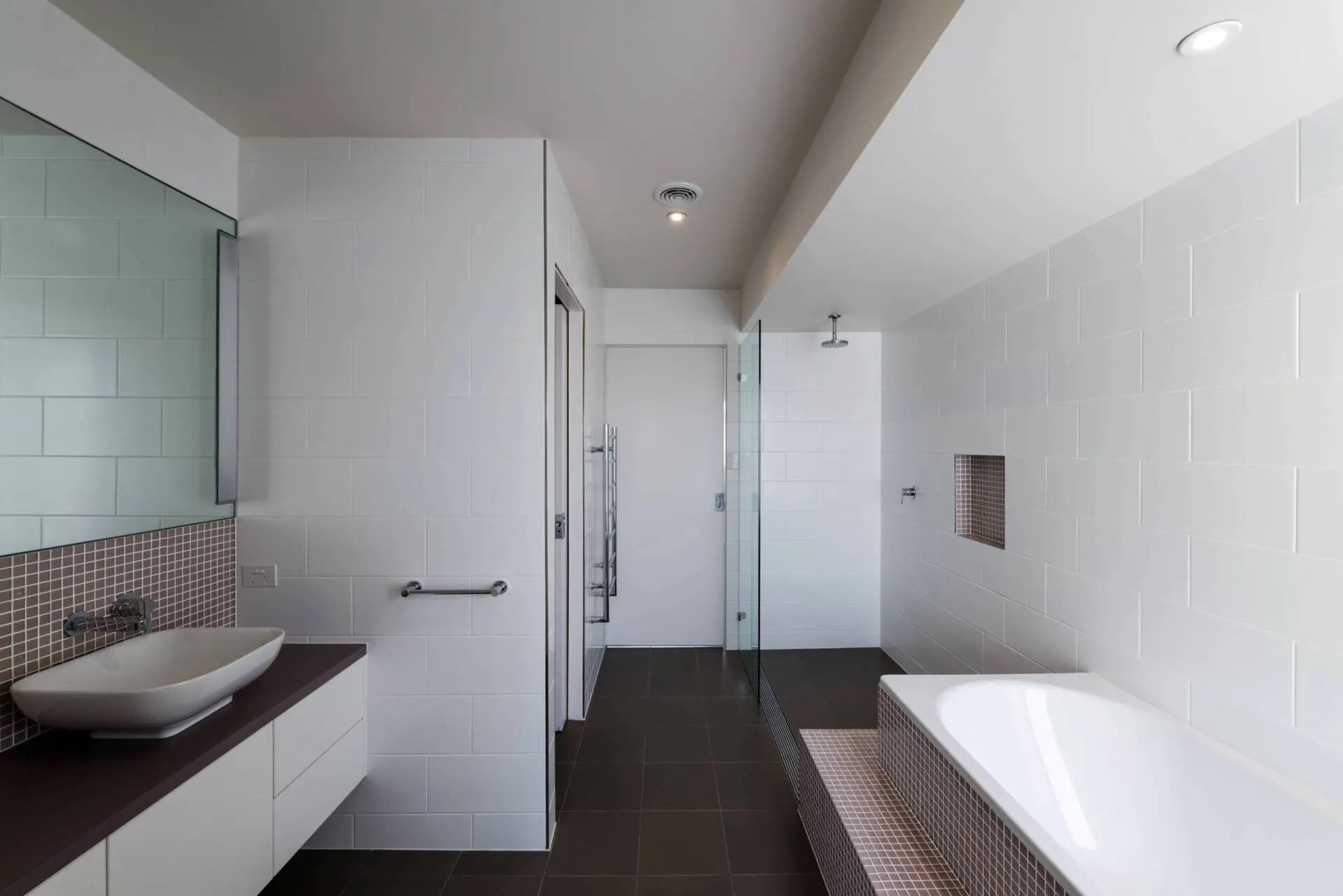 If the design includes a doorless shower then it must be situated so as to minimise water spillage into the rest of the bathroom. If this can’t be achieved then a door to the shower should be used.