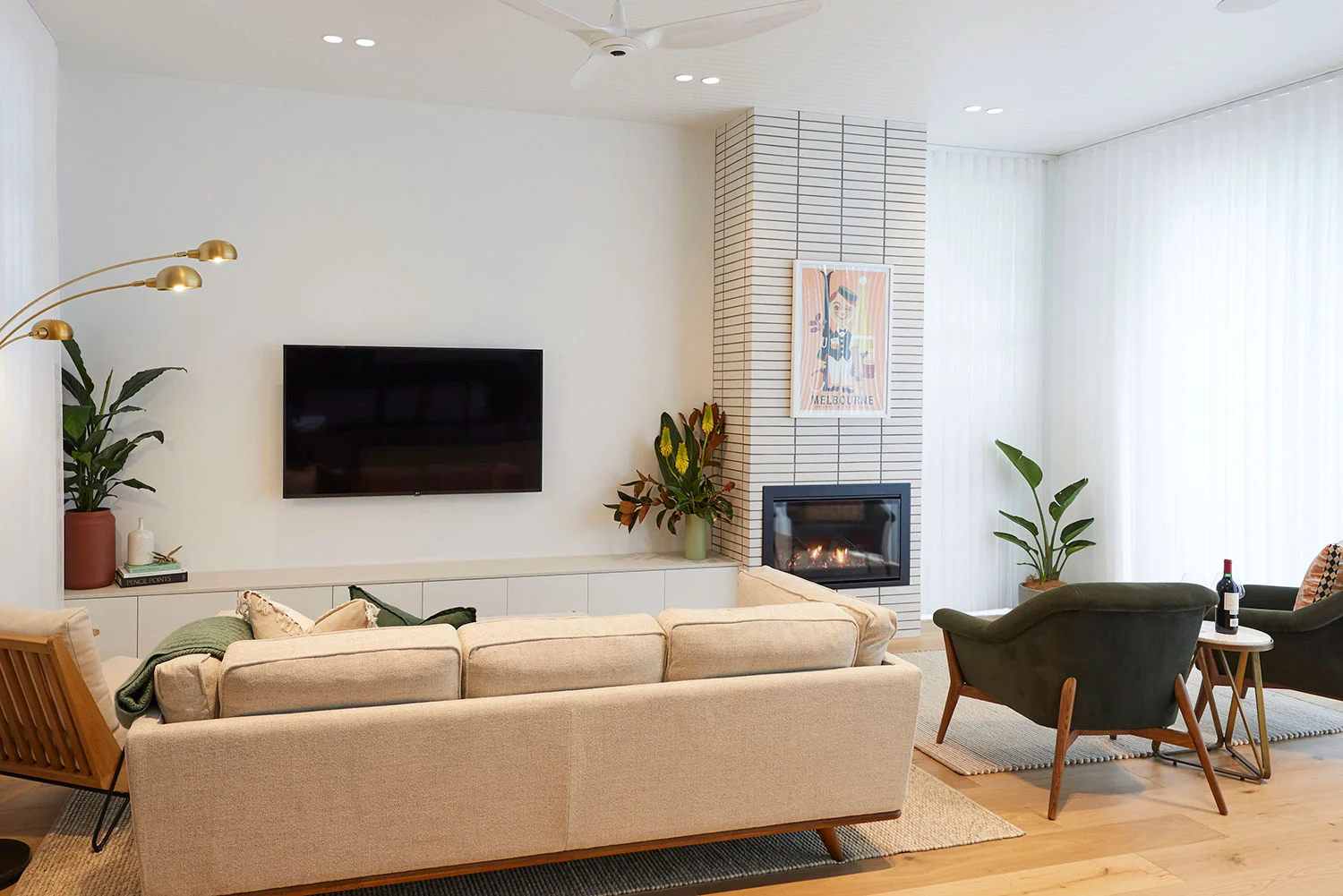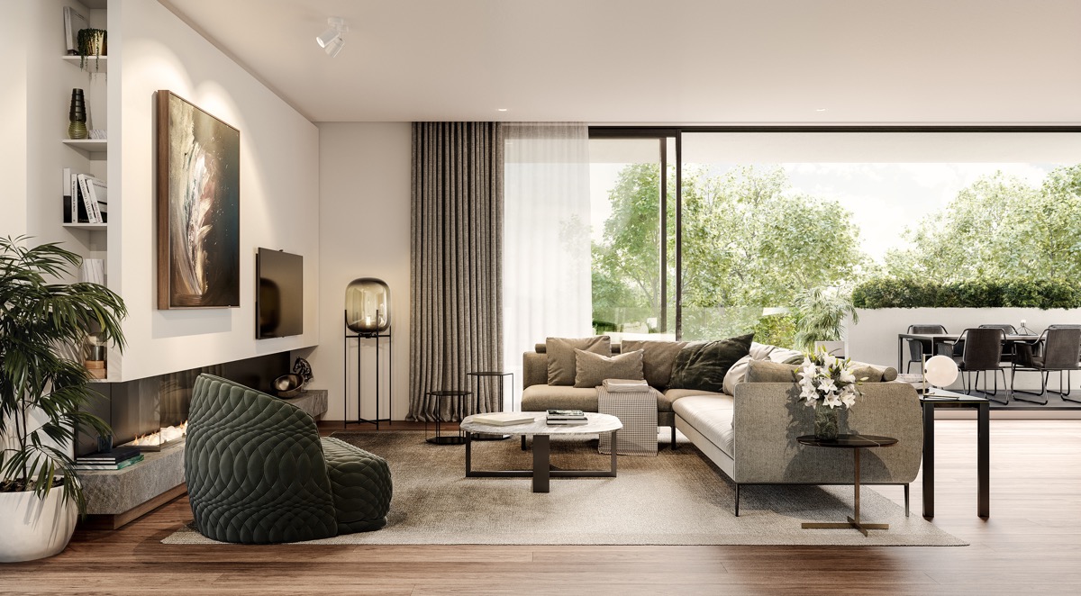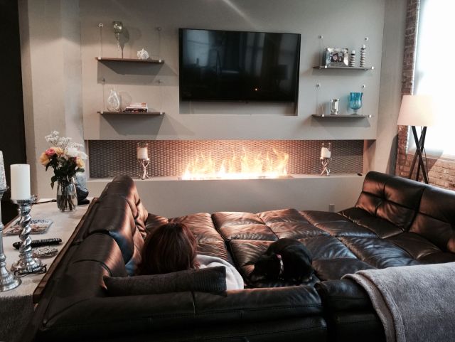 Aside from a lounge, one or two single seat chairs, a coffee table and a flat screen TV, we would also like to be able to incorporate a built-in fireplace as the ambience this will provide is very appealing to us.